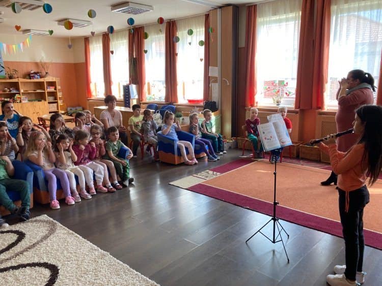 Tegnap az oviban jártunk művészeti iskolánk kis fúvós növendékeivel. Büszkén zenéltek egykori ovis társaiknak az immár “nagy” iskolások, Juhász Zsuzsanna és Oláh Edina. Együtt játszottunk és énekeltünk mindannyiunk örömére! Köszönjük az Óvoda vezetőjének, dolgozóinak a szíves fogadtatást! Szeretnénk viszonozni hétfőn, március 20-án egy délelőtti szuper iskolanyitogató, sulikóstoló programmal! Szeretettel várunk minden érdeklődőt, szülőt, gyermeket! Ismerkedjünk, kézműveskedjünk, zenéljünk, táncoljunk együtt.